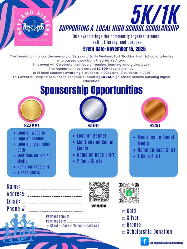 NEYLAND SISTERS 5K/1K Run & Walk EVENT https://ftstockton.ploud.net/news-events/neyland-sisters-5k-1k-run-walk-1 https://ftstockton.ploud.net/@@site-logo/FSPB-roadrunner-book-V2.eps.png NEYLAND SISTERS 5K/1K Run & Walk EVENT